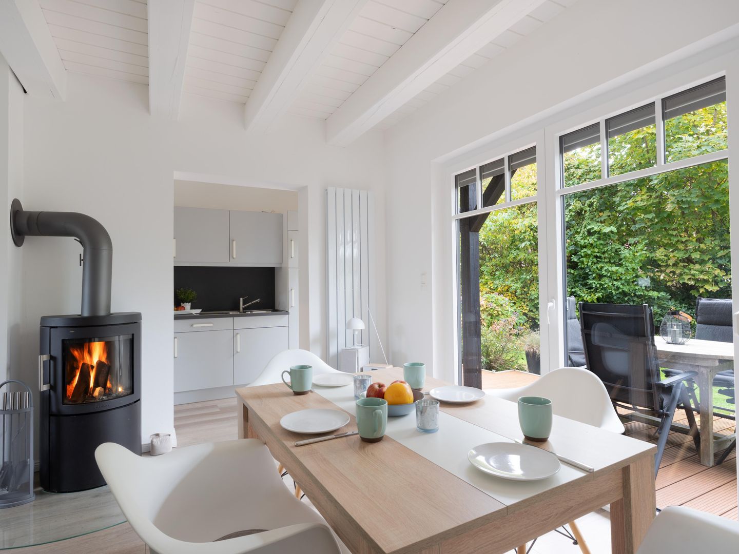 Der Essbereich befindet sich im gleichen Raum und eröffnet einen herrlichen Blick in den privaten Garten und zur Terrasse.